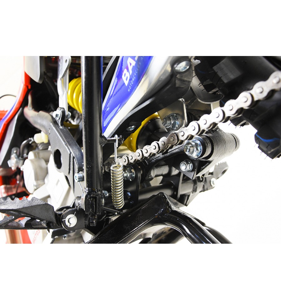 Transmission : Couronne 520 à 45 dents, axe 58 mm – Pignon 520 axe de 20, 14 dents – Chaine 110 maillons KMC 520