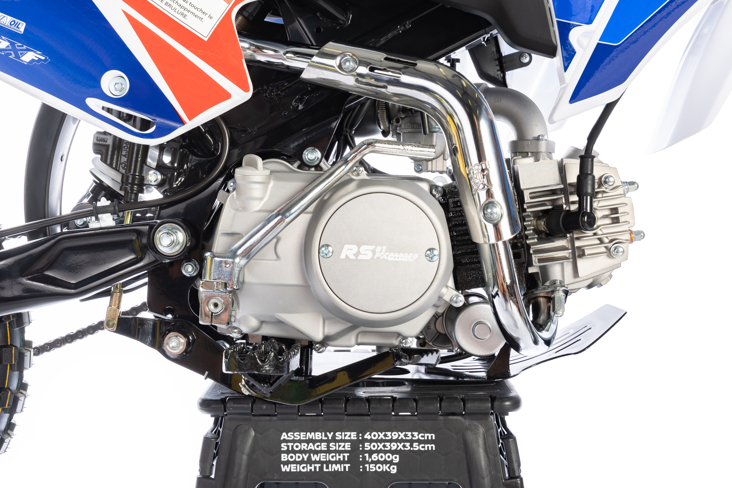 Transmission finale : Pignon 14 – Couronne 41 – Chaine #420