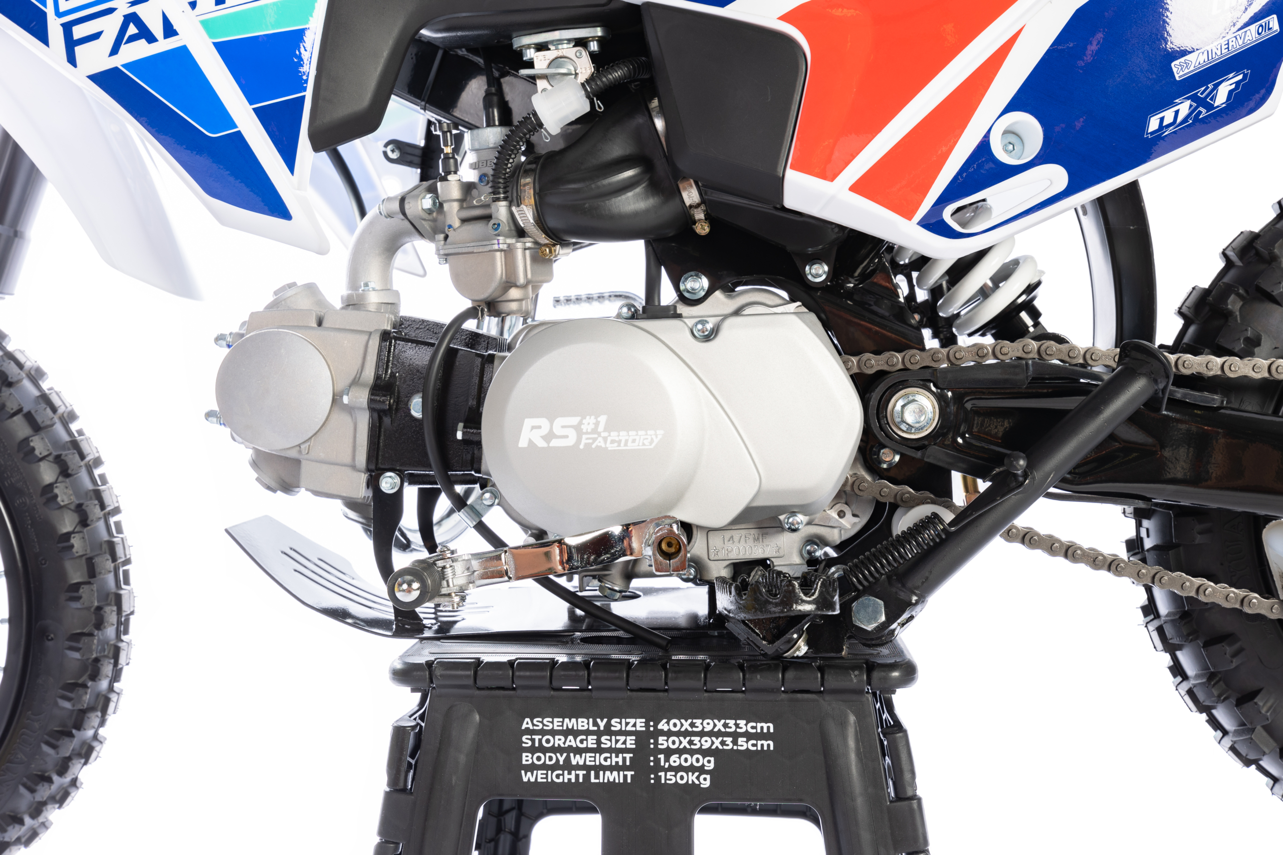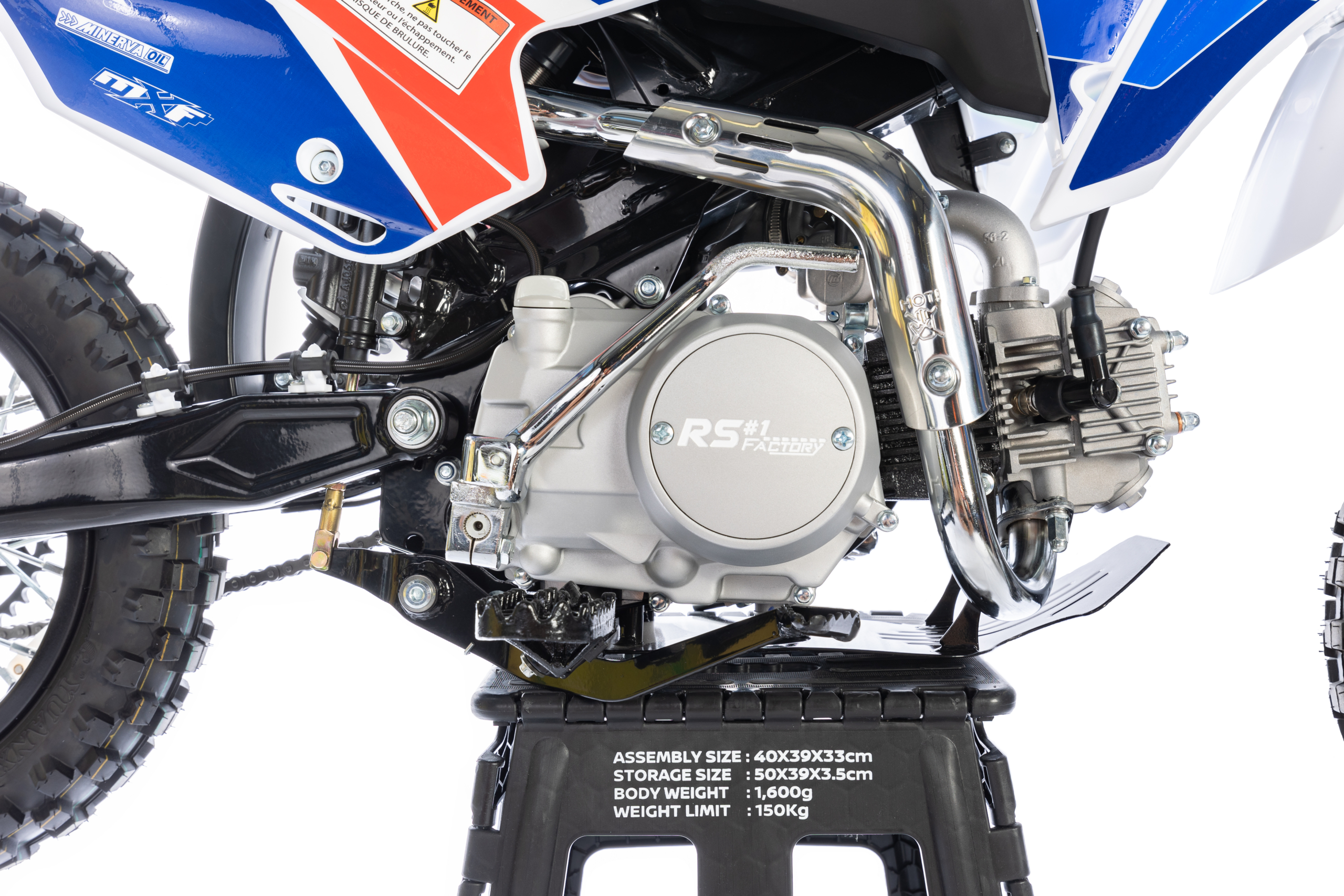 Transmission finale : Pignon 14 – Couronne 41 – Chaine #420