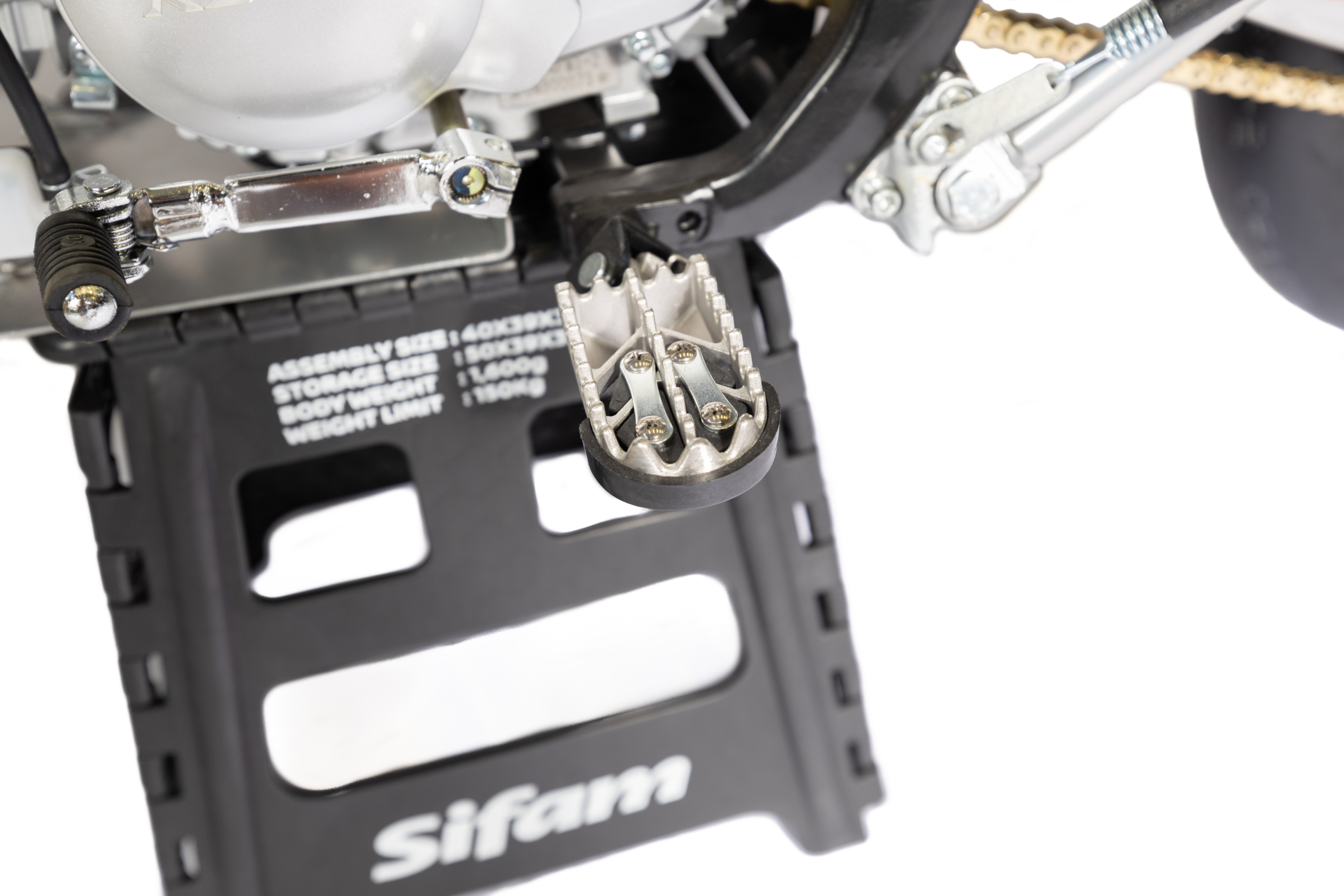 – Kit repose pieds repliables avec réhausses alu usinées